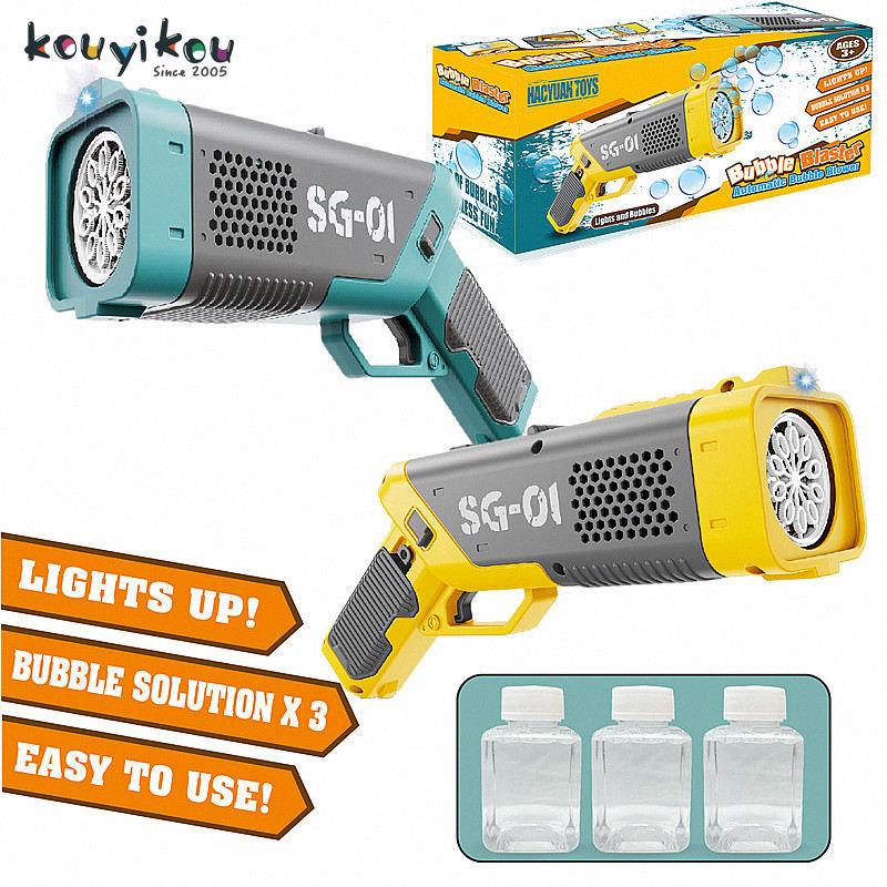 Kouyikou Summer Toys Electric Bubble Machine Kids Automatic Bubble Gun with Blaster Plastic Summer Fun Blower
