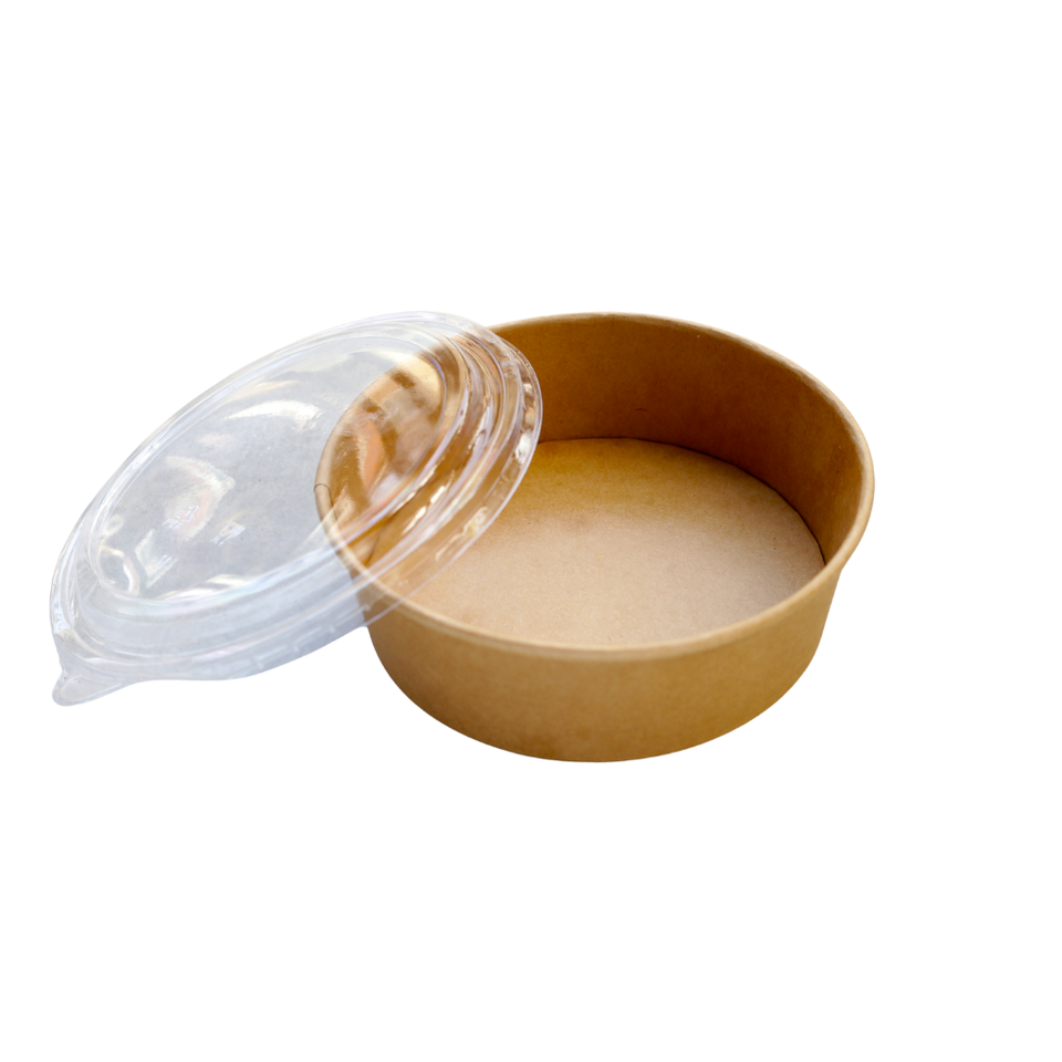Kraft Paper Bowl with PET Lid Salad Bowl Brown Disposable Craft Paper Kraft Paper Eco-friendly Single Wall Salad Bowl
