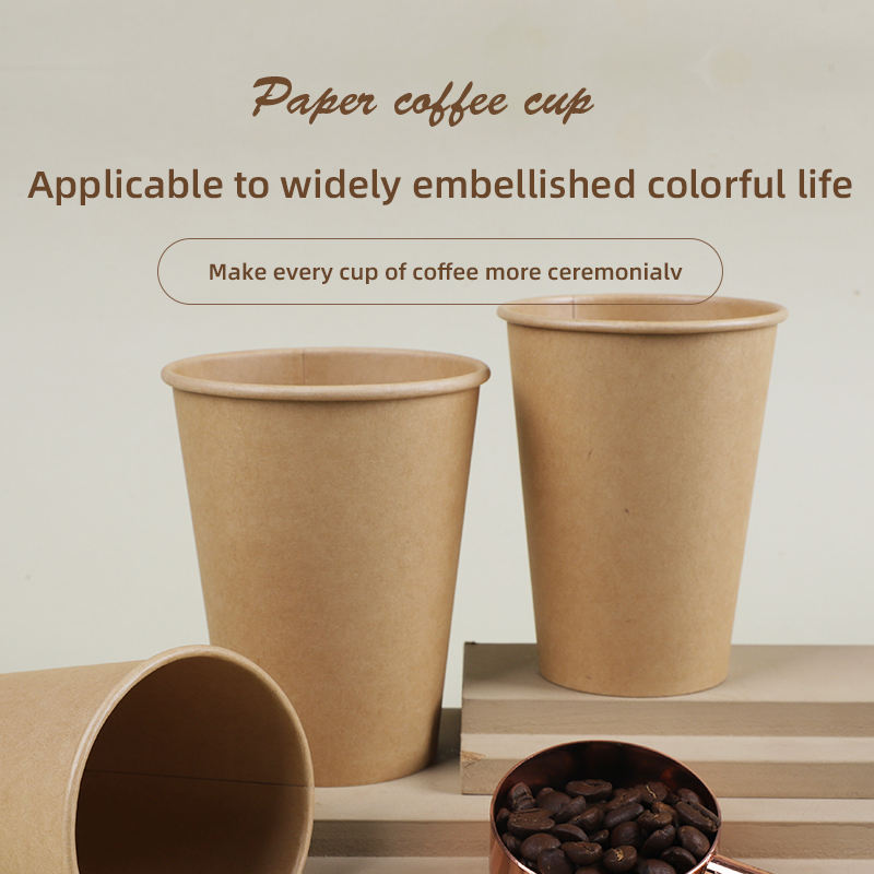 Kraft Paper Cups Disposable Eco Friendly Brown Paper Cup with Lid Single Wall 14/16oz Custom Kraft Cups for Hot Coffee Beverages
