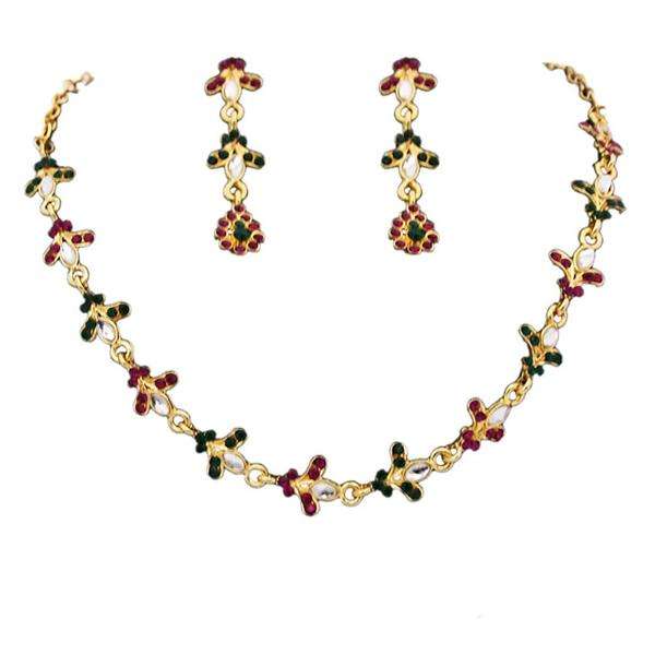 Kriaa 1100308 Maroon and Green Austrian Stone Necklace Set with Gold Plate Elegant Bridal or Fine Jewelry for Gifts