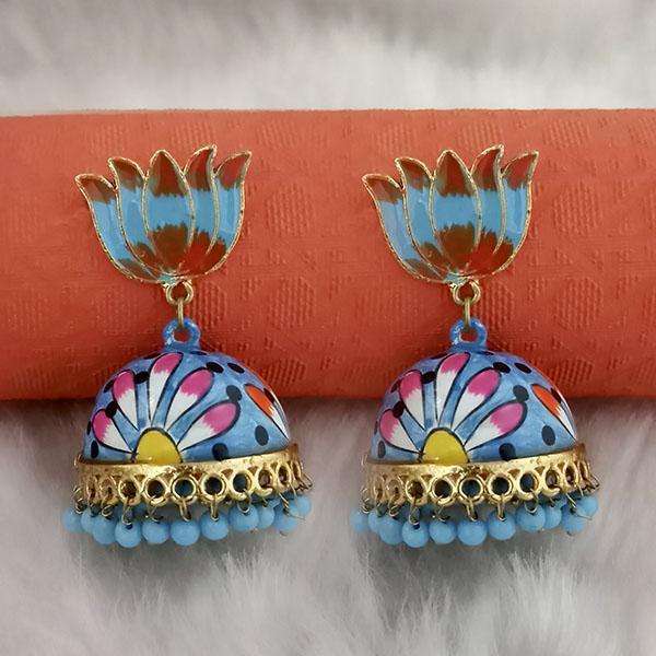 Kriaa Blue Meenakari Lotus Jhumka Earrings 1314429H Fashion Accessory