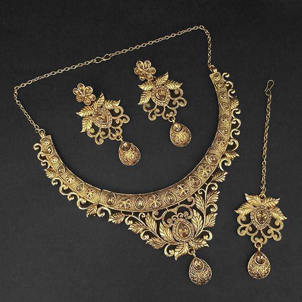 Kriaa Brown Austrian Stone Necklace Set with Maang Tikka Gold Plated 1107985 Fine Jewelry Set