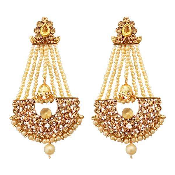 Kriaa Brown Austrian Stone Pearl Dangler Earrings Gold-Plated 1312948D-Fine Dangle Style