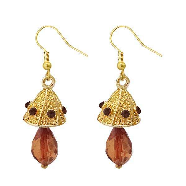 Kriaa Brown Gold Plated Jhumki Earrings-1313707F Trendy Vintage Style Austrian Stone Hoop Studs Brass for Party Pearl Main Stone