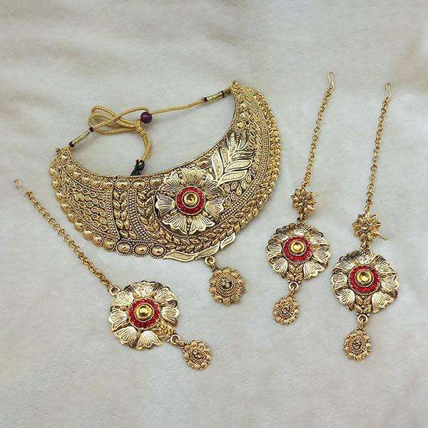 Kriaa Brown Kundan Choker Necklace Set with Maang Tikka Gold-Plated Fine Jewelry-1113621