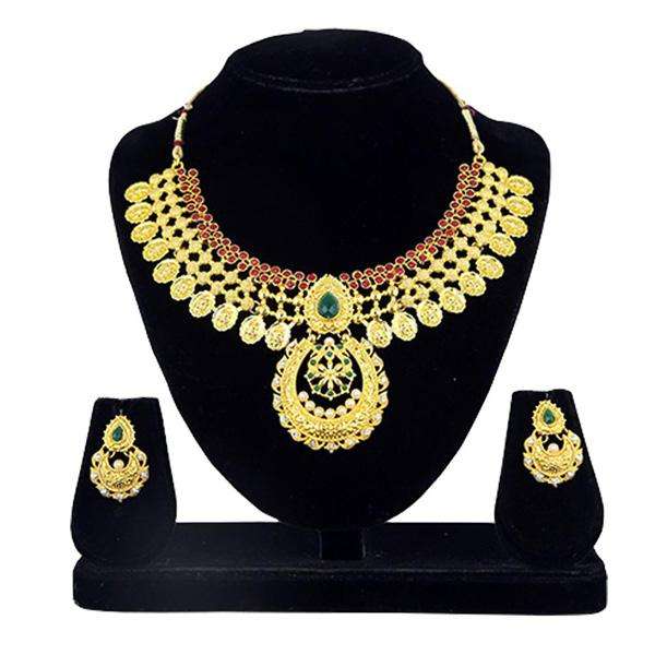 Kriaa Classic Party Wedding Necklace Set Freshwater Pearl with Gold-Plated Pota Stone Emerald Cut Diamond Quartz Zircon Stones