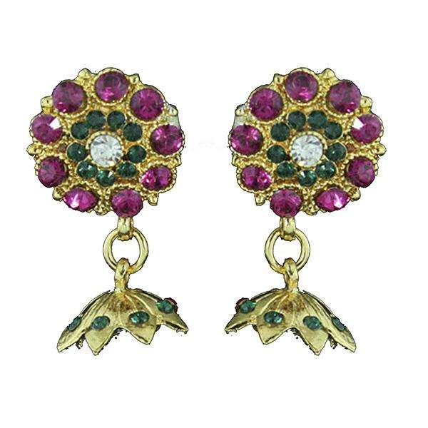 Kriaa Fashion Chandelier Earrings 1501312 Gold Plated with Purple and Green Austrian Stones