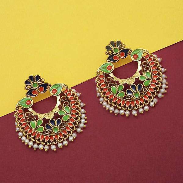 Kriaa Fine Cuff Earrings Multicolor Meenakari Gold Plated Pearl Dangler 1314230F Model