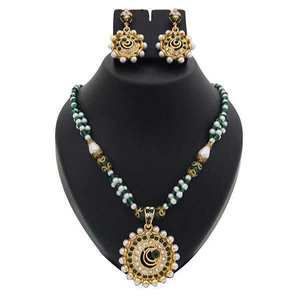 Kriaa Fine Jewelry Set Green Austrian Stone Pearl Gold Plated Pendant 1200214