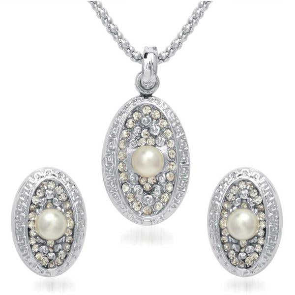 Kriaa Fine Jewelry Set Silver Plated White Austrian Stone Pendant