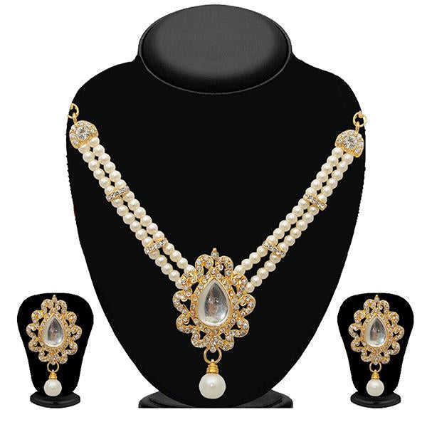Kriaa Fine Jewelry Set White Austrian Stone & Gold-Plated Pearl Necklace 2100407