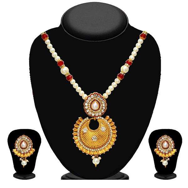 Kriaa Fine Jewelry Set White Austrian Stone & Gold-Plated Pearl Necklace 2102605 Model