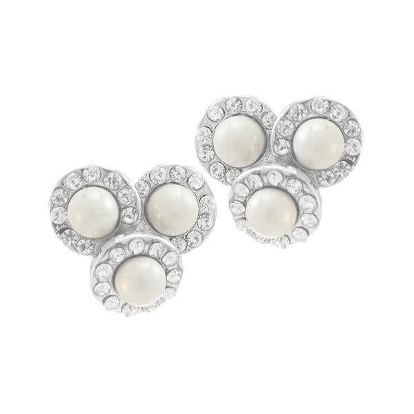 Kriaa Fine Stud Earrings Silver Plated with White Austrian Stone Pearl 1307163