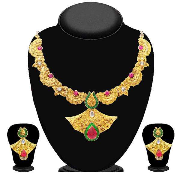 Kriaa Gold Plated Necklace Set with Pink Austrian Stone for Wedding-2100307