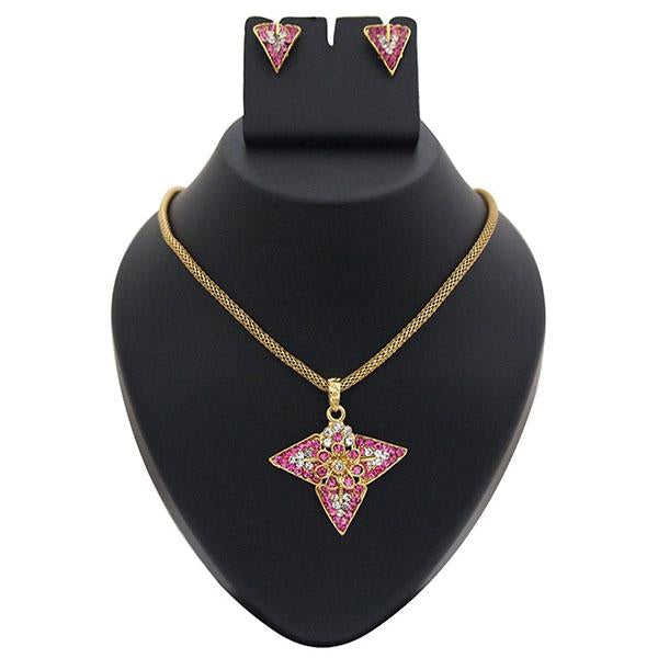 Kriaa Gold Plated Zinc Alloy Pendant Set Pink Austrian Stone 1200304