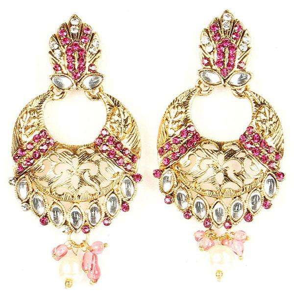 Kriaa Kundan Fashion Chandelier Earrings Gold Plated Chandbali with Austrian Stone 1300223
