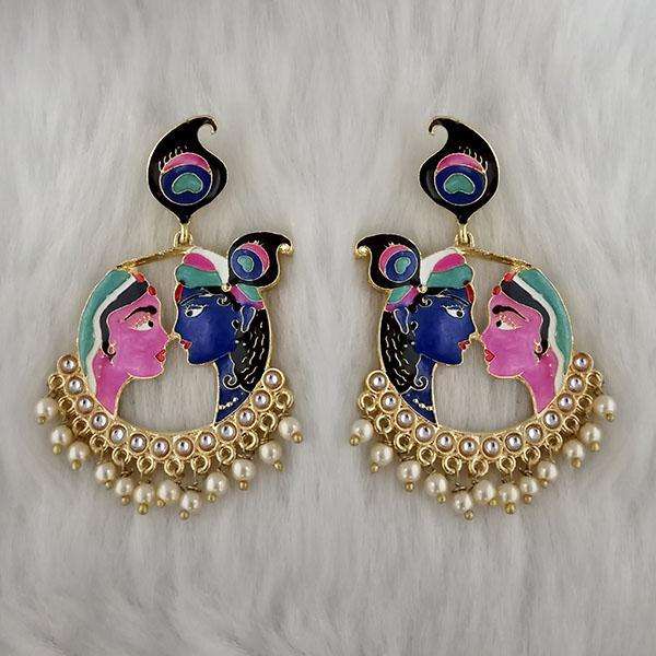 Kriaa Kundan Stone Radha Krishna Meenakari Dangle Earrings Fine 1314426B Jewelry