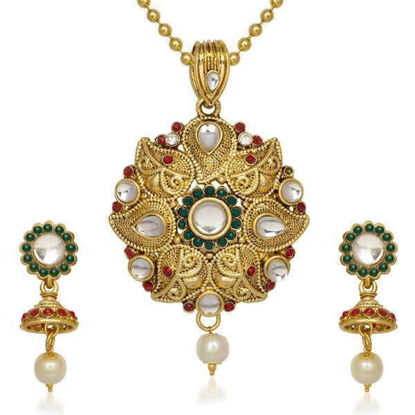 Kriaa Luxury Fine Jewelry Set Modern Classic Maroon Pota Stone Pendant with Gold Plating for Wedding Engagement Gift Made Alloy