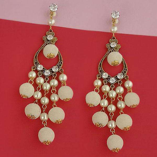 Kriaa Onyx Austrian Stone and White Pom Pom Dangler Earrings Trendy Style 1315512F