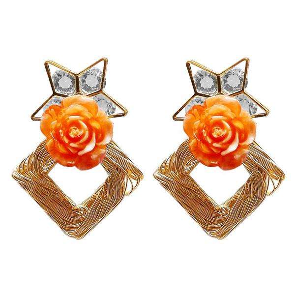Kriaa Orange Gold Plated Resin Stone Floral Dangler Earrings for Wedding & Engagement-1311404D