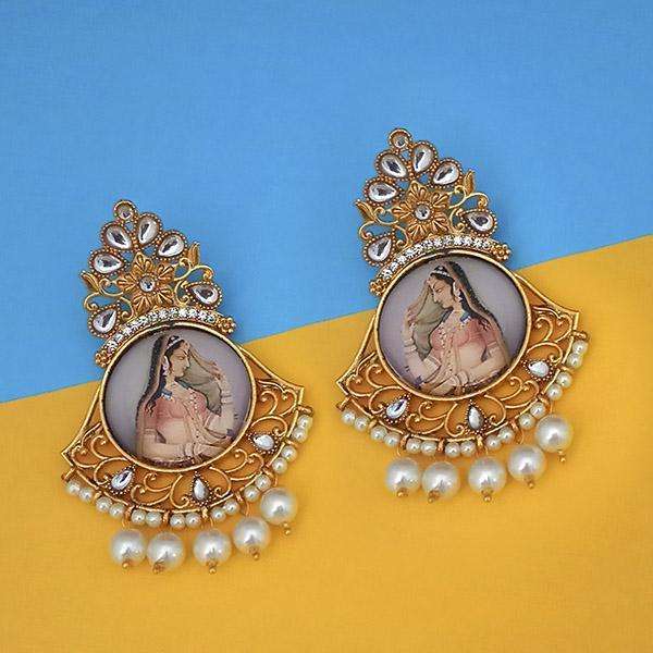 Kriaa Padmavati Inspired Gold Plated Kundan Stone Dangler Earrings Fine Cuff Jewelry-1315114