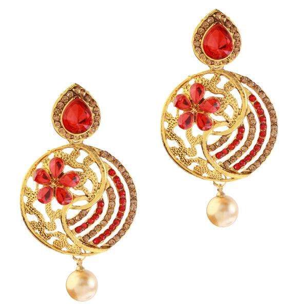 Kriaa Red Austrian Stone Gold Plated Dangler Earrings Trendy Rose Gold Pendant with Pearl Diamond for Wedding Party-1307404C"