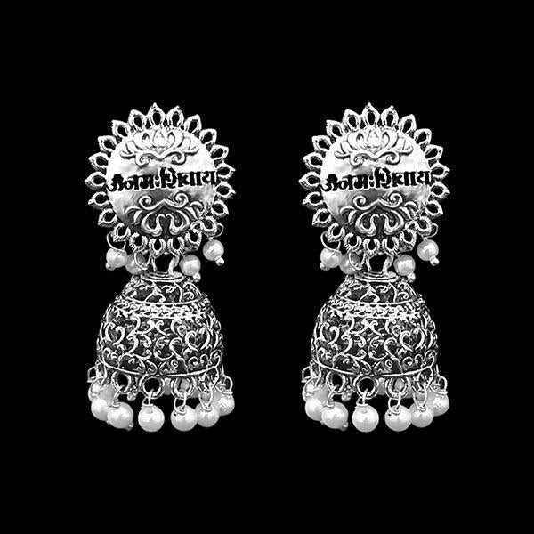 Kriaa Rhodium Plated Floral Design Jhumki Earrings 1311545 Ethereal Ethnic Style with Pearl and Diamond Mainly Made of Alloy