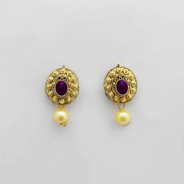 Kriaa Trendy Gold-Plated Purple Austrian Stud Earrings Marquise Cut Zircon Pearl for Weddings Anniversaries Engagements-1312701F