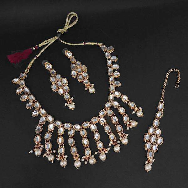 Kriaa White Kundan and Pearl Necklace Set with Maang Tikka Gold-Plated Fine Jewelry