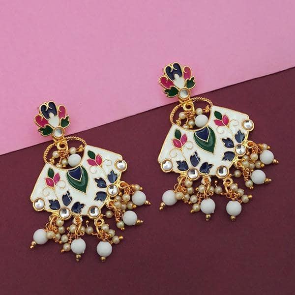Kriaa White Meenakari Kundan Gold Plated Fine Dangle Earrings Model 1314204E