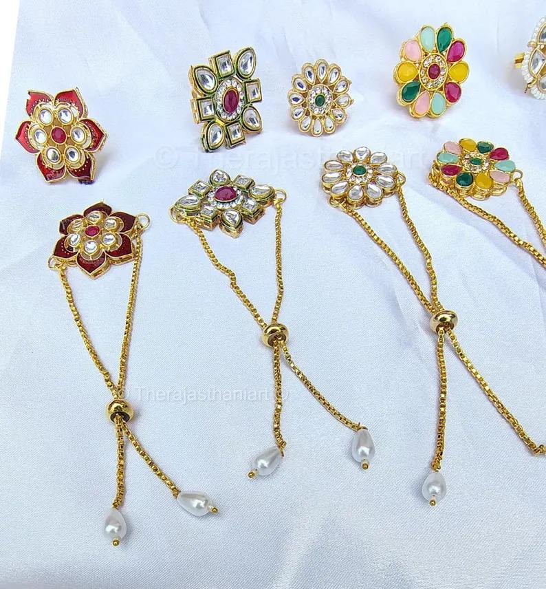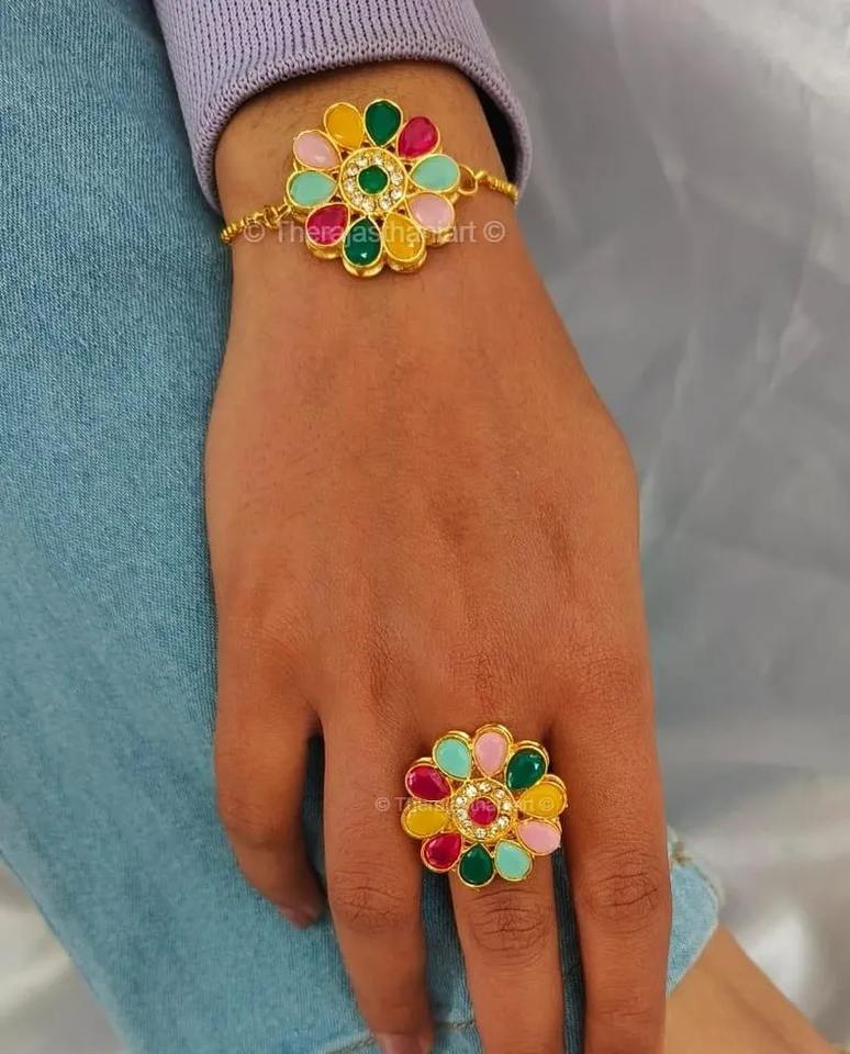 Product Name:Kundan Ring Wristband Combo Of 2 Pieces