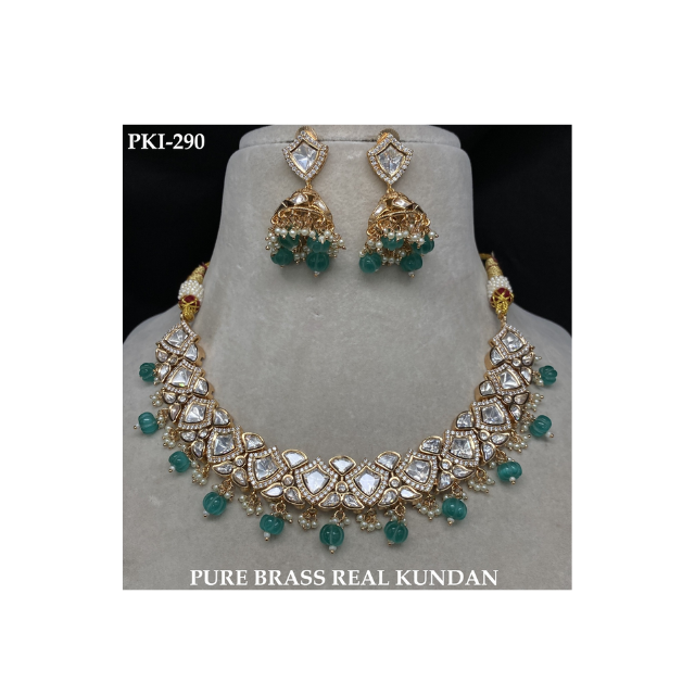 Elegant Kundan Brass Necklace & Jhumka Earrings Set with American Diamonds Bridal Jewelry for Weddings & Parties