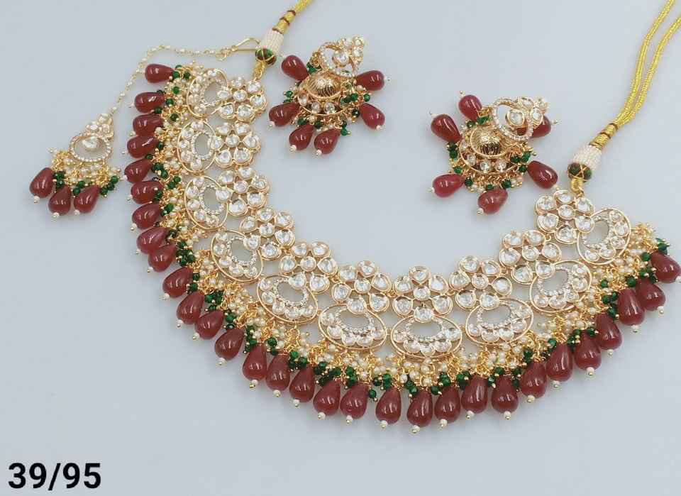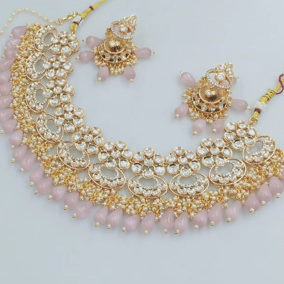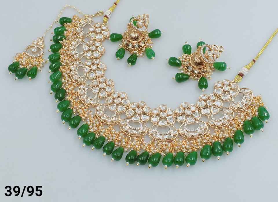 Kundan & Drop Indian Fancy Traditional GoldTone Kundan Motipearl Choker Necklace Set With Matching Mangtikka&jumkha Earring Set