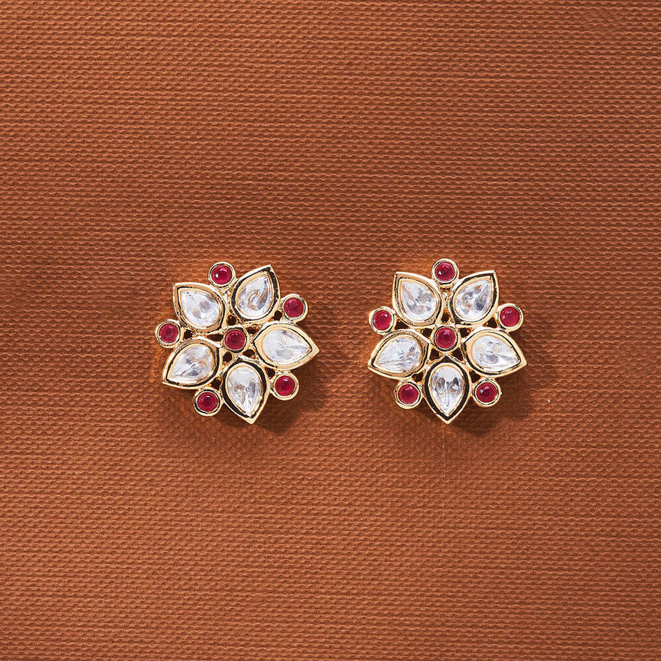 Kundan Fashion Stud Earrings With Gold Plating Elegant Tops Design