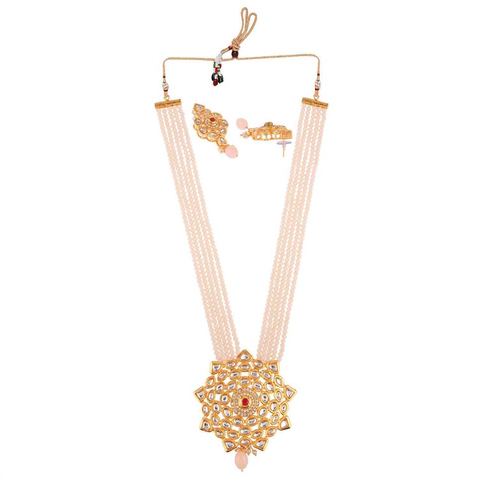Design:Indian faux pearl beaded strand necklace earrings bridal jewelry set