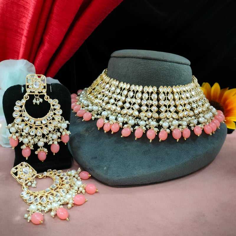 Kundan & Hanging Pearls Necklace Set Radiant Stones Set In Gold Tone Settings Regal & Luxurious Look Ideal For Special Occasions