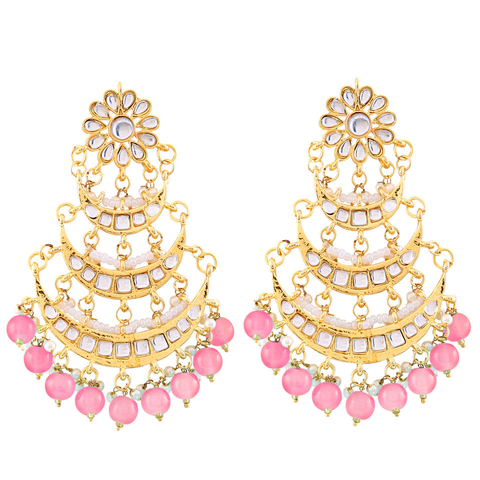 Kundan Jadau Drop Earrings Hyderabadi Pearl Alloy with Crystal & Rhinestone White Color Trendy Wedding Earrings for Women Girls