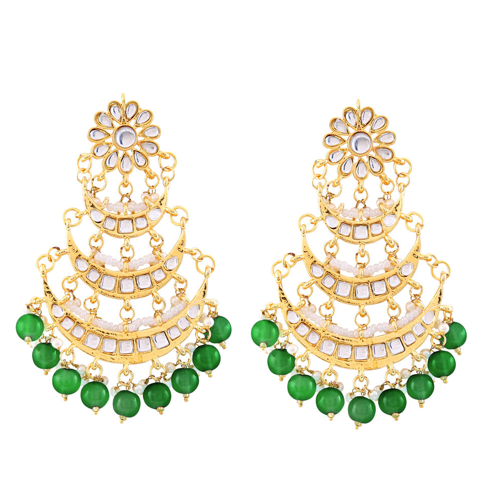 Kundan Jadau Drop Earrings Hyderabadi Pearl Alloy Crystal & Rhinestone Color Trendy Wedding Earrings for Women Girls