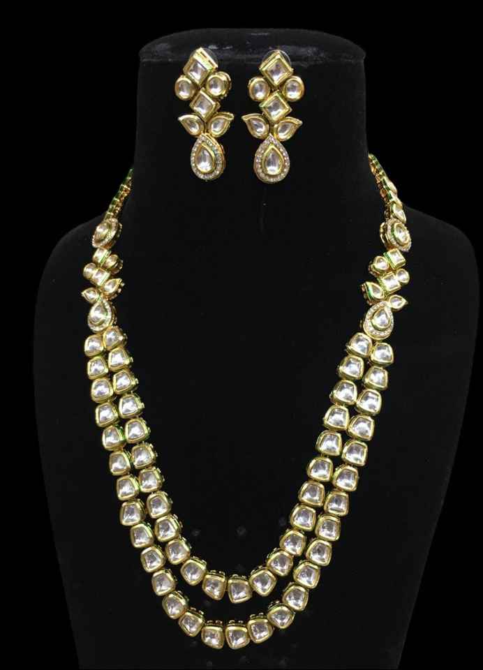 Kundan Long Double Layer Necklace Set With Backside Meenakari For Girls Women