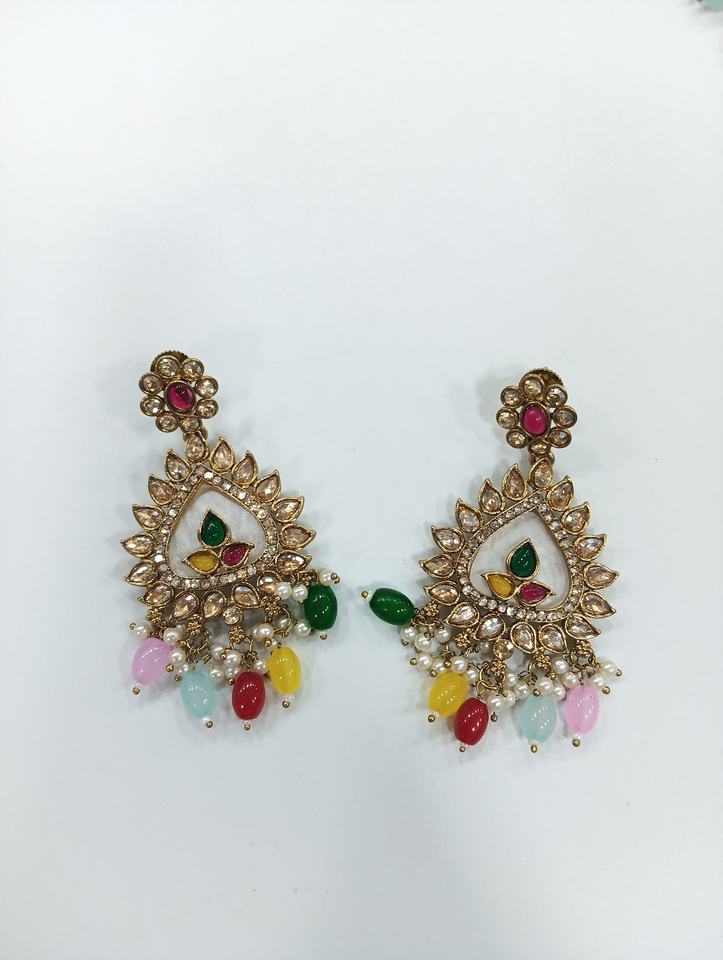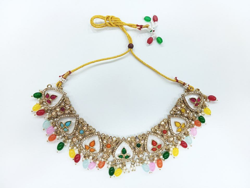Kundan Necklace Set Indian Jewelry Trendy Bridal Sets Multicolor Wholesale Fashion Pearl Beaded Wedding Set