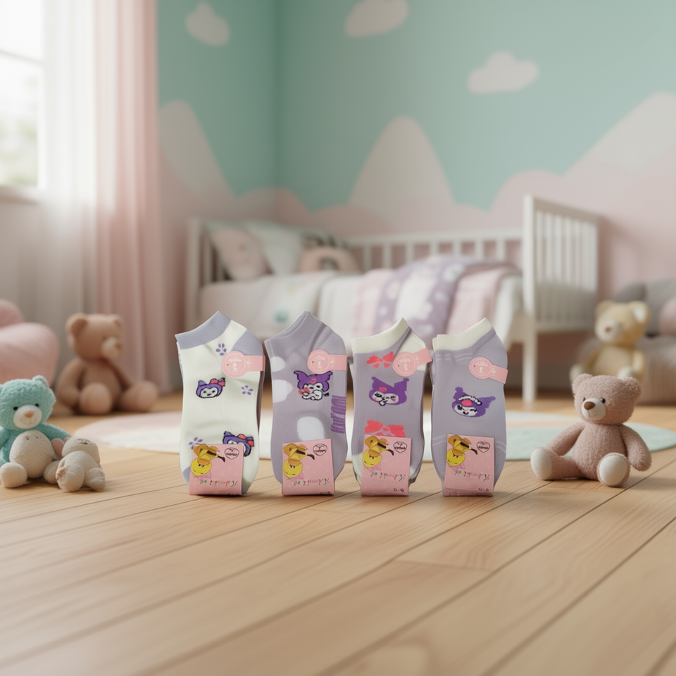 Kuromi Character Print No Show Socks For Girls Cotton Blend Breathable Casual Daily Wear Spring Style