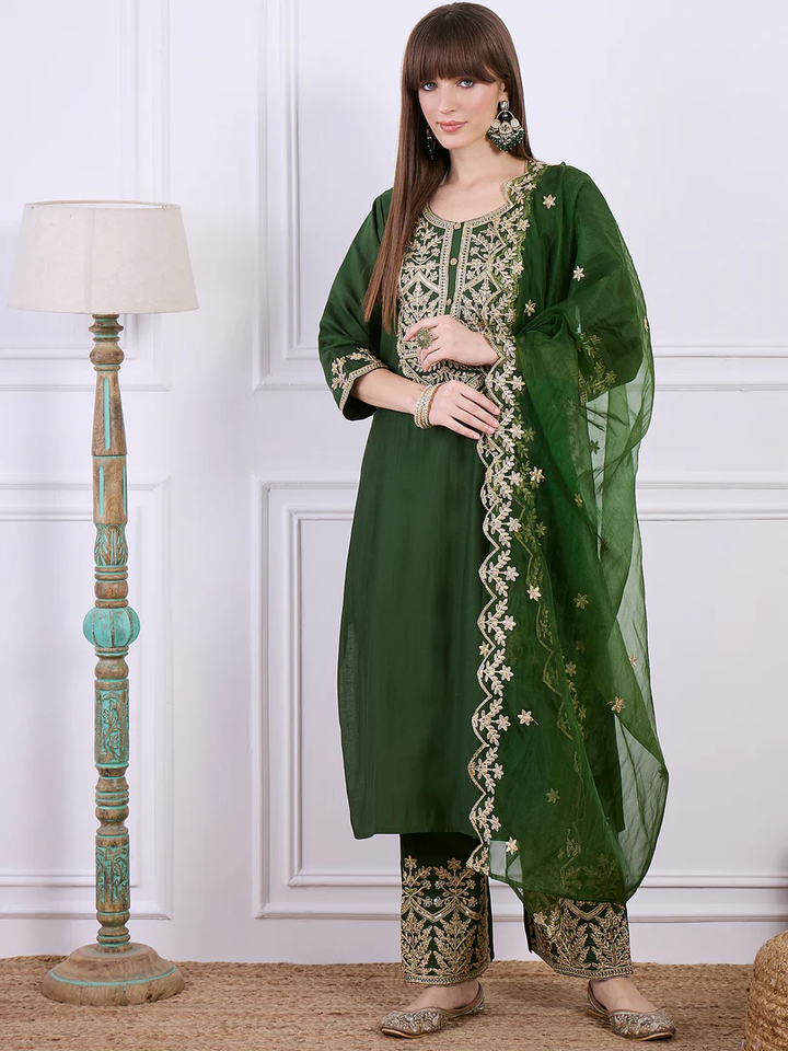 Kurta Set for Women Embroidered Indian Kurti Set Elegant Ladies Ethnic Wear Three Piece Outfit Perfect for Daily Wear