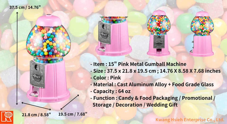 Name:Kwang Hsieh 15" Pink Candy Vending Retro Gumball Machine