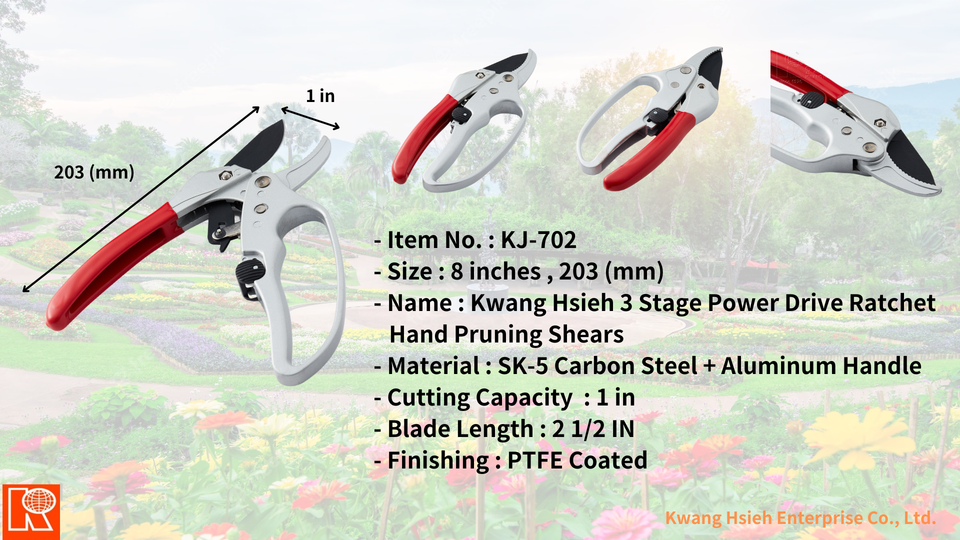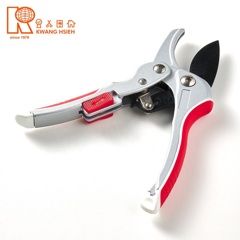 Kwang Hsieh 3 Stage Power Drive Ratchet Hand Pruning Shears SK5 Blade DIY Grade Aluminum Handle Anti-Slip Grip