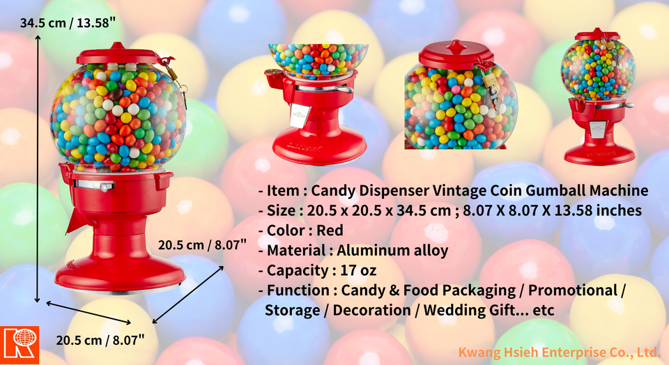 Product name:Kwang Hsieh Candy Bin Dispenser Vintage Coin Gumball Machine