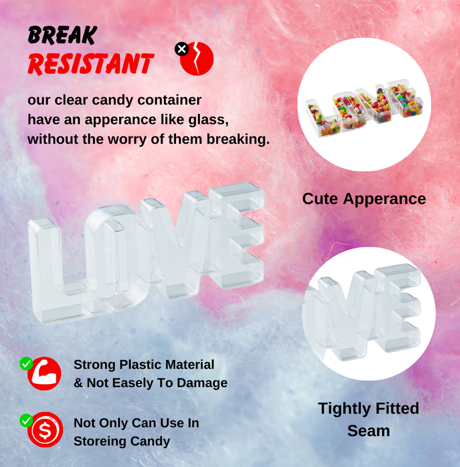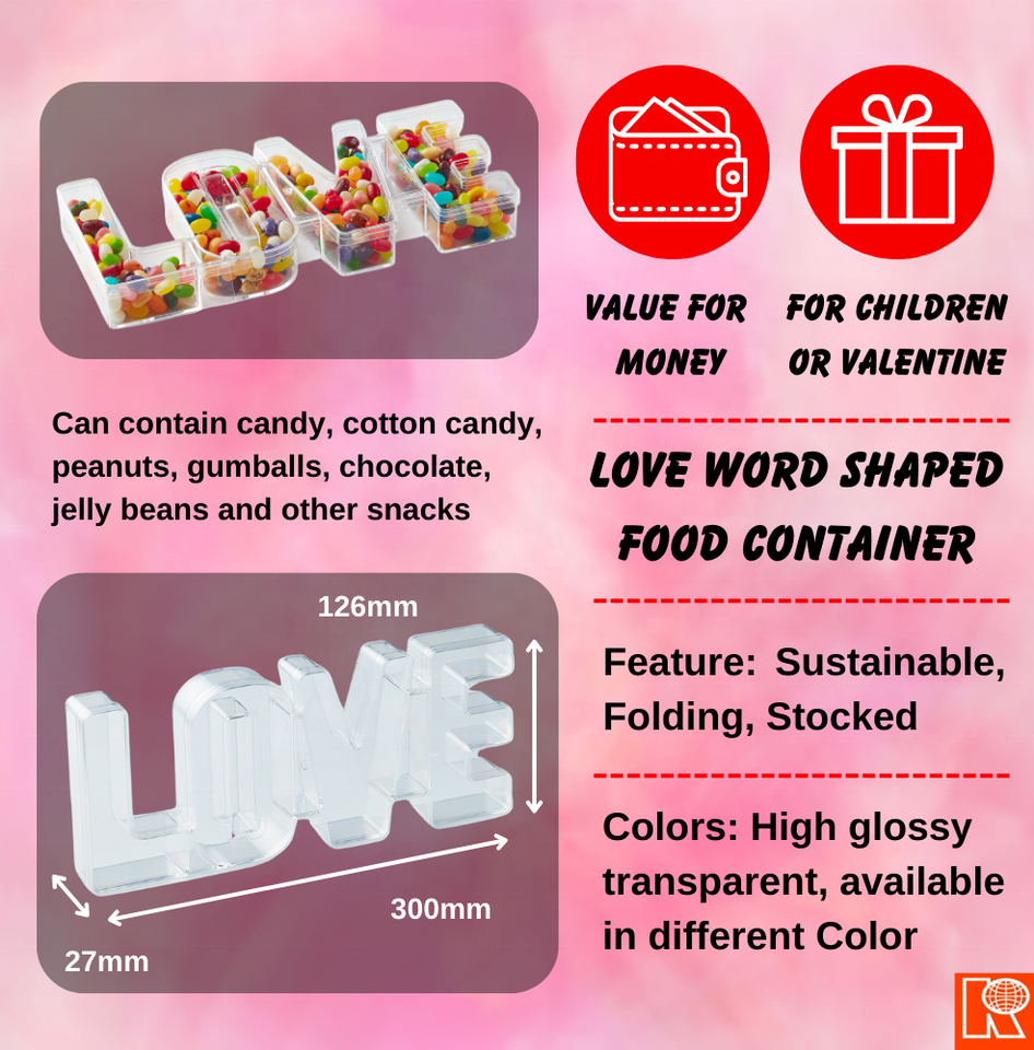 Product name:LOVE Word Shaped Clear Plastic Candy Favor Container Box