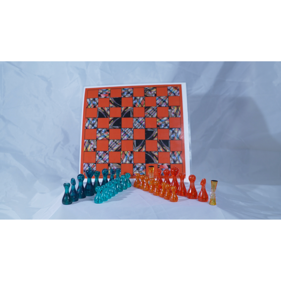 Modern 2-in-1 Kids Wooden Chess Checkers Set Handmade with Classic Style Featuring Silicone Metal Pieces on a Classic Board