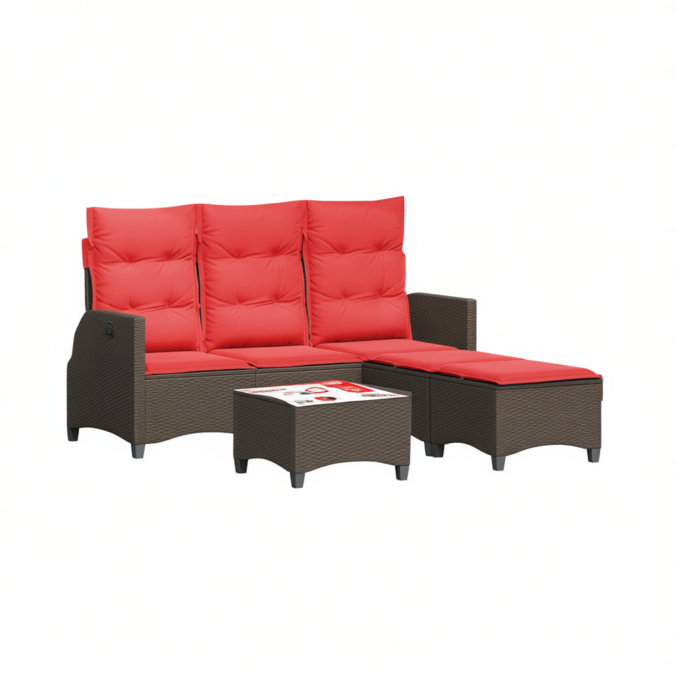 L-Shaped Brown Poly Rattan Patio Sofa Set With Cushions For Garden Use