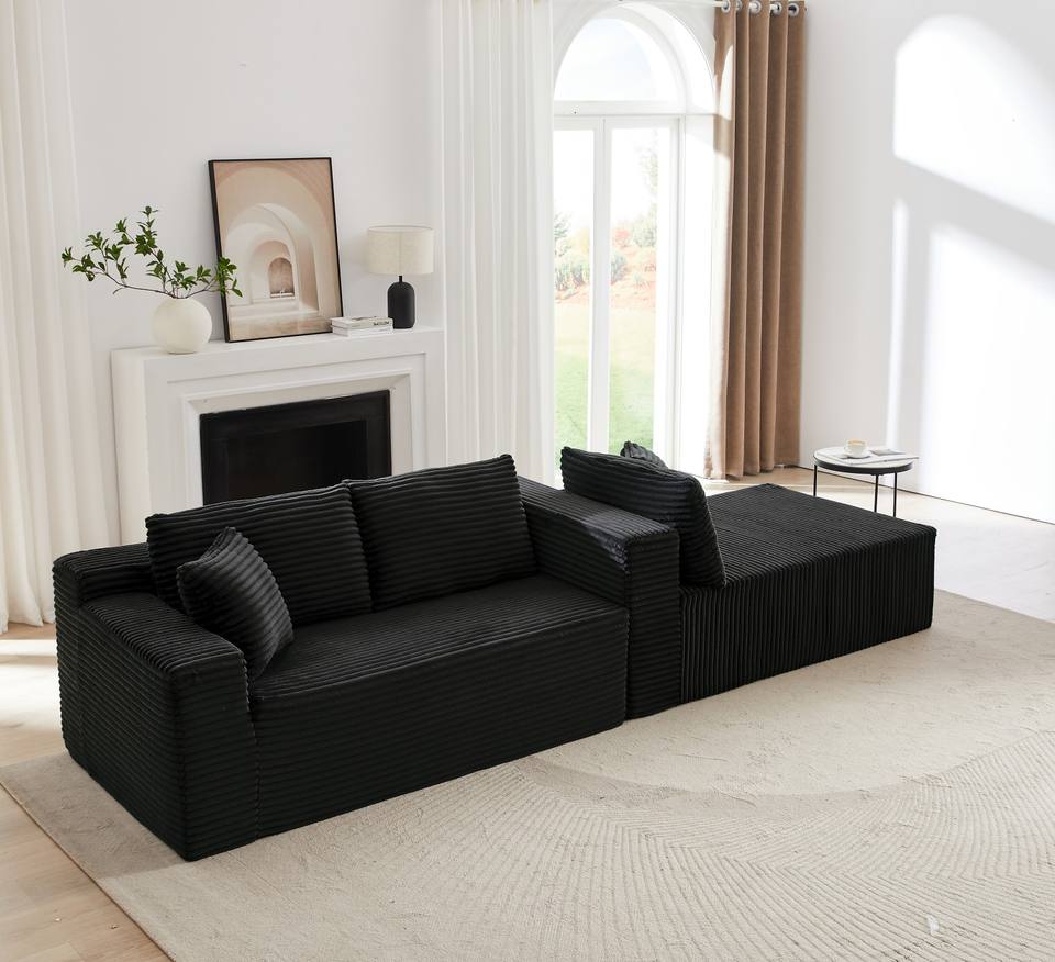 L-Shaped Convertible Modular Sectional Sofa Set Corduroy Fabric Deep-Seat No Assembly Required Comfy Sleeper Living Room
