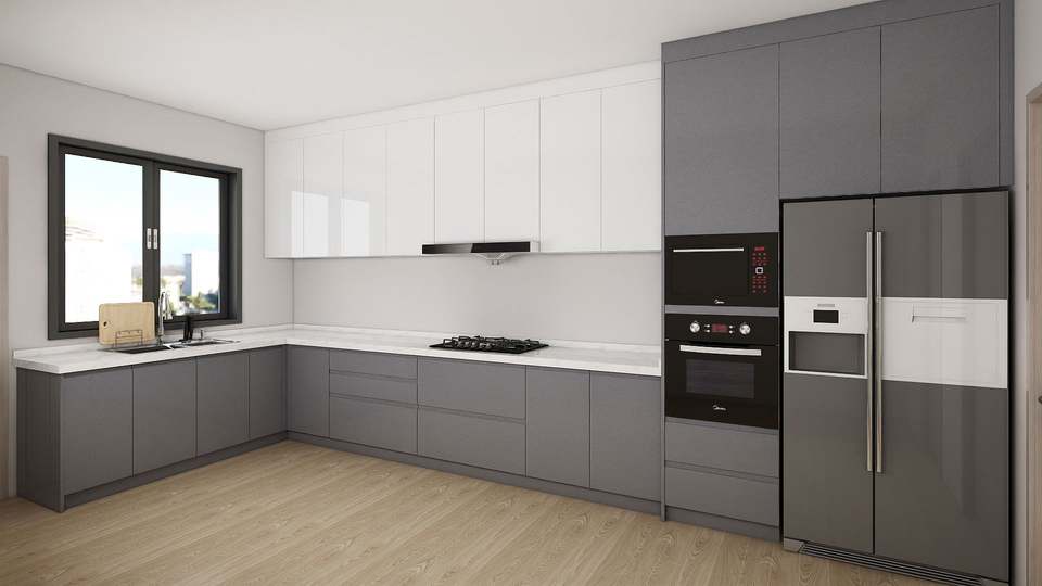 L-shaped Kitchen Cabinets with Lacquer Finish Built-in Oven&Microwave for Apartment Use